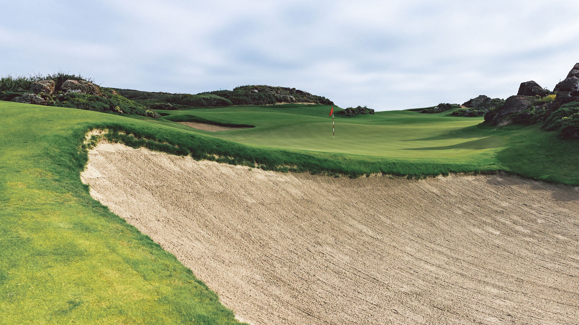 Designed by Tom Doak, the course features more over-ocean holes than any other course in the world. The front nine features dramatic topography paired with greens over the water's edge. The back nine is flatter with multiple over-ocean par 3s.