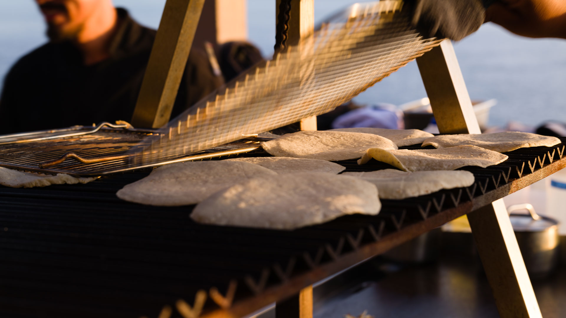 Open-flame cooking by rotating guest chefs using local catch and Baja produce. No fixed menu — it changes with the season and the day's haul.